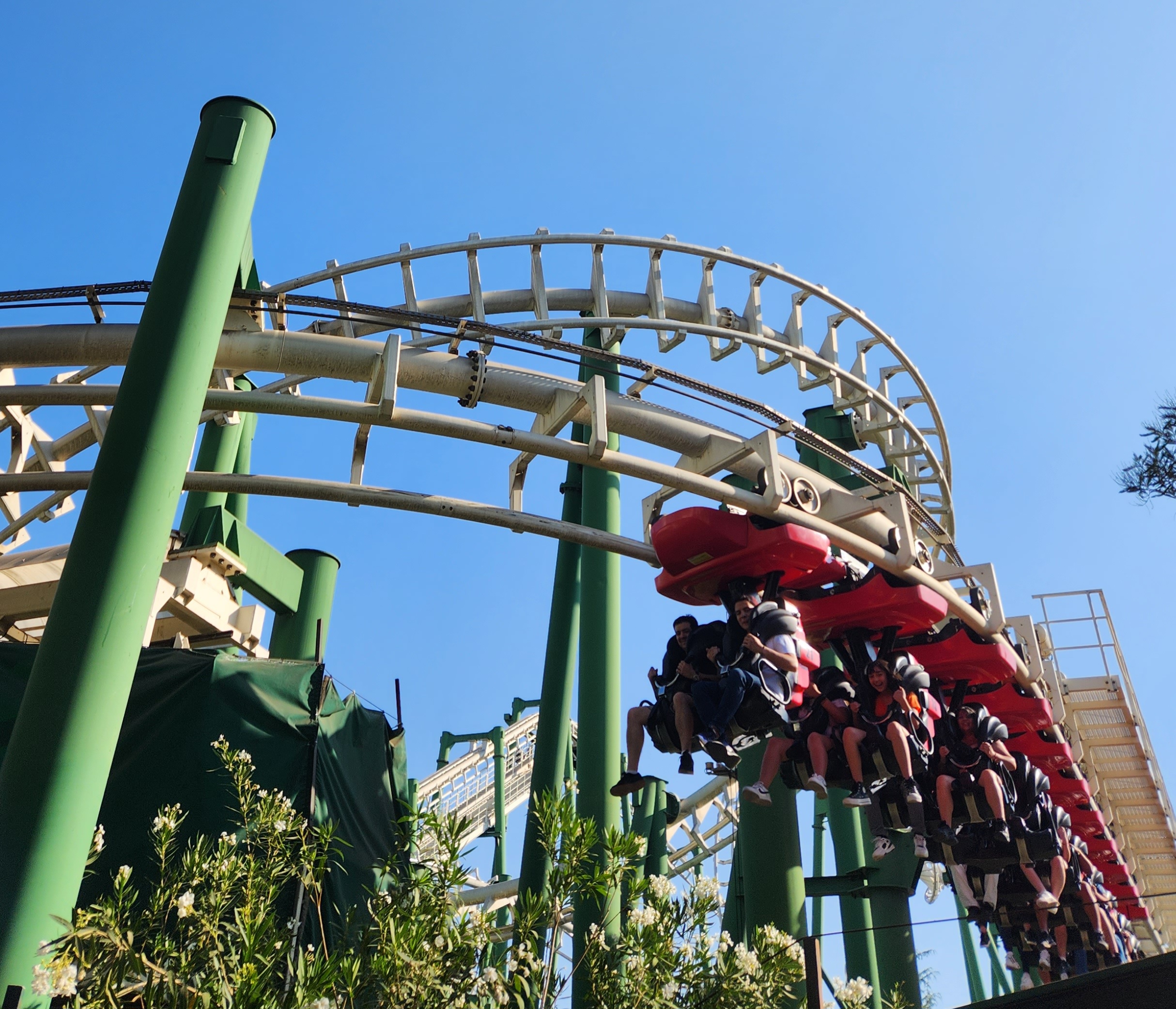 Raptor: una montaña rusa invertida. Sí, invertida. Todos van literalmente con las piernas colgando tal como si una gran ave rapaz te cazara.